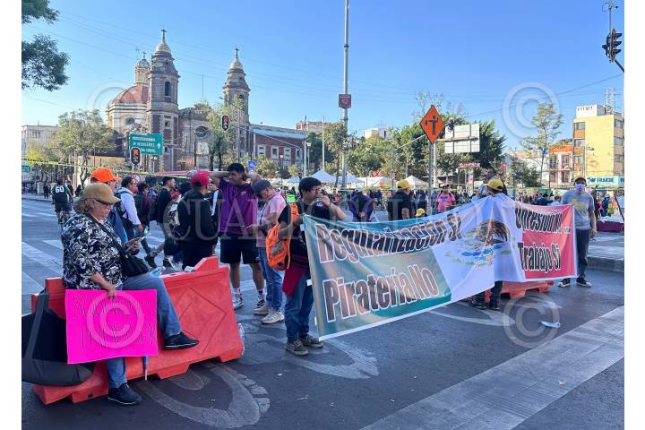 CIUDAD DE MÉXICO, 02DICIEMBRE2024.- Comerciantes supuestamente de la Plaza Izazaga 89 protestan de manera pacífica, deteniendo la vialidad de Pino Suárez y Avenida 20 de Noviembre, para exigir que se detenga la extinción del inmueble como plaza comercial. Esto ocurre luego de que Marcelo Ebrard Casaubón, secretario de Economía, anunciara que se suspendería el uso comercial de la plaza por piratería y falta de pago de impuestos. FOTO: ANDREA MURCIA /CUARTOSCURO.COM