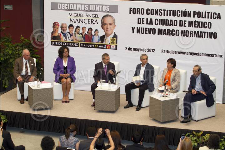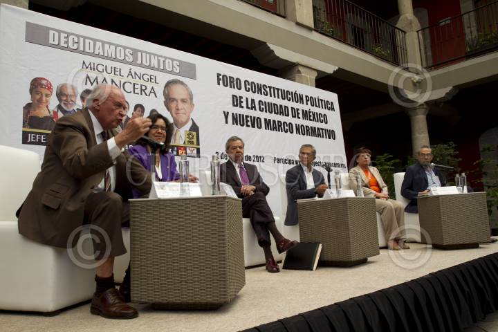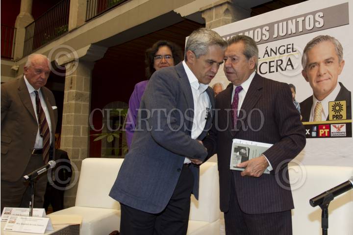 MÉXIO D.F., 02MAYO2012.- Miguel Ángel Mancera, candidato de las izquierdas para la jefatura de Gobierno del Distrito Federal, acudió al foro “Constitución Política DF” en el que participaron José Agustín Ortiz Pincheti, Rosalinda de León Zamora, Porfirio Muñoz Ledo Rosalinda y Amado Córdova, que se realizo en hotel de la colonia Centro. FOTO: GUILLERMO PEREA /CUARTOSCURO.COM