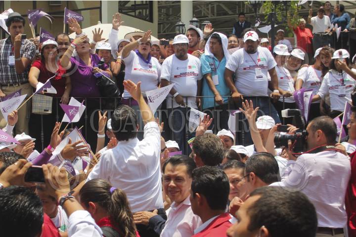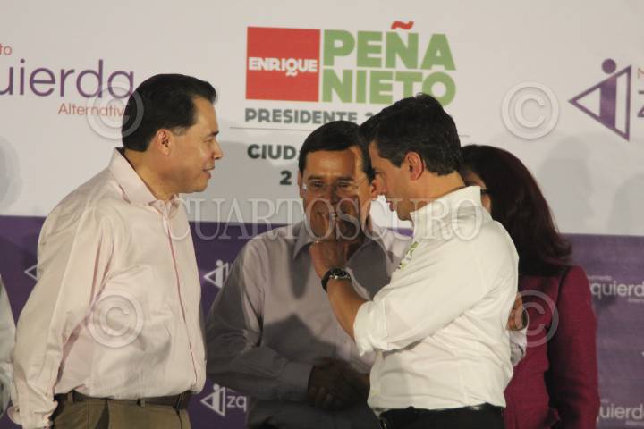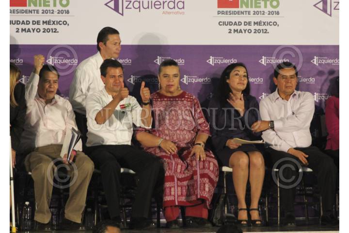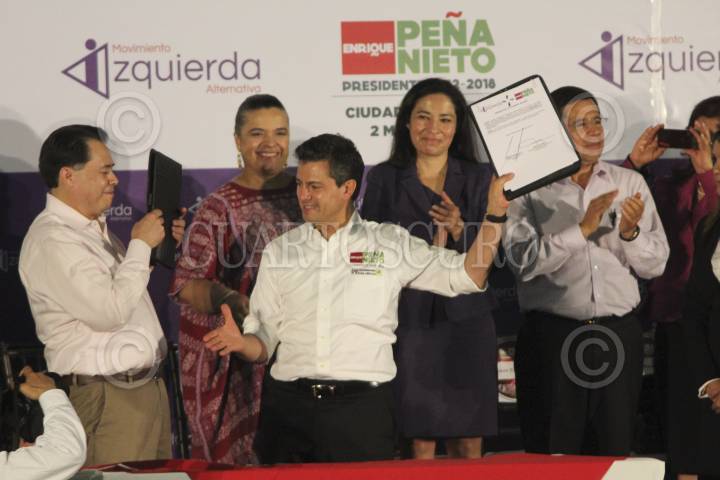 MÉXICO, D.F., 02MAYO2012.- Enrique Peña Nieto, candidato de la coalición “Compromiso por México” se reunión integrantes de la organización "Izquierda Alternativa", donde firmó un acuerdo denominado Alianza por un Proyecto de País. Durante el acto estuvo acompañado por Beatriz paredes, candidata a jefa de gobierno, y por los dirigentes de Izquierda Alternativa, Rene Arce, Víctor Hugo Cirigo y Ruth Zavaleta. FOTO: SAÚL LÓPEZ/CUARTOSCURO.COM