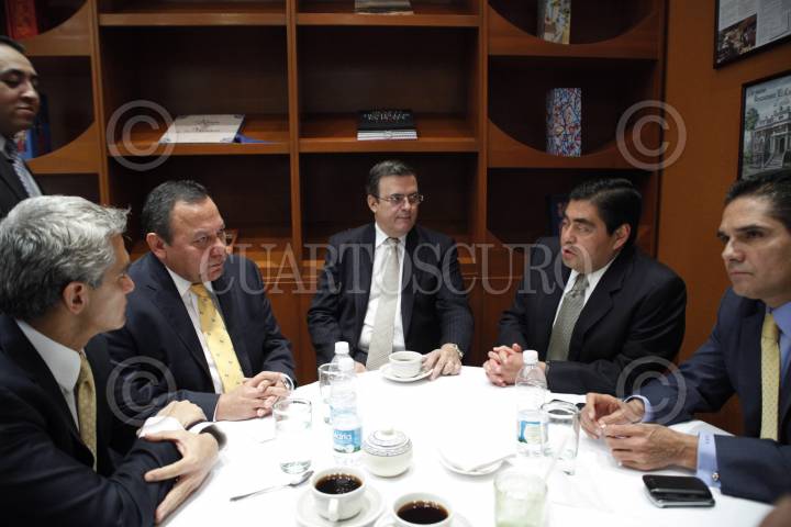 MÉXICO, D.F., 21NOVIEMBRE2012.- Miguel Ángel Mancera, Jefe de Gobierno electo, Jesús Zambrano, presidente nacional del PRD, Marcelo Ebrard Casaubón, Jefe de Gobierno, Miguel Barbosa, coordinador de los senadores perredistas y Silvano Aureoles Conejo, coordinado de los diputados federales del PRD, en una reunió que tenía como objetivo hablar sobre la postura que tomaría el partido en la ceremonia de toma de posesión de Enrique Peña Nieto, a realizarse en la Cámara de Diputados el próximo 1 de diciembre. FOTO: CUARTOSCURO.COM