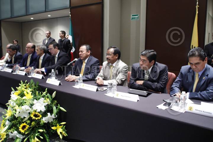 MÉXICO, D.F., 21NOVIEMBRE2012.- Graco Ramírez, gobernador electo de Morelos, Miguel Ángel Mancera, Jefe de Gobierno electo, Marcelo Ebrard Casaubón, Jefe de Gobierno, Jesús Zambrano, presidente nacional del PRD, Alejandro Sánchez Camacho, secretario general del PRD, Miguel Barbosa, coordinador de los senadores perredistas y Silvano Aureoles Conejo, coordinado de los diputados federales del PRD, durante una conferencia de prensa en la cual se suponía fijarían su posición en la ceremonia de toma de posesión de Enrique Peña Nieto, a realizarse en la Cámara de Diputados el próximo 1 de diciembre. FOTO: CUARTOSCURO.COM