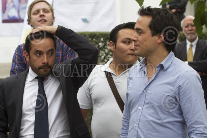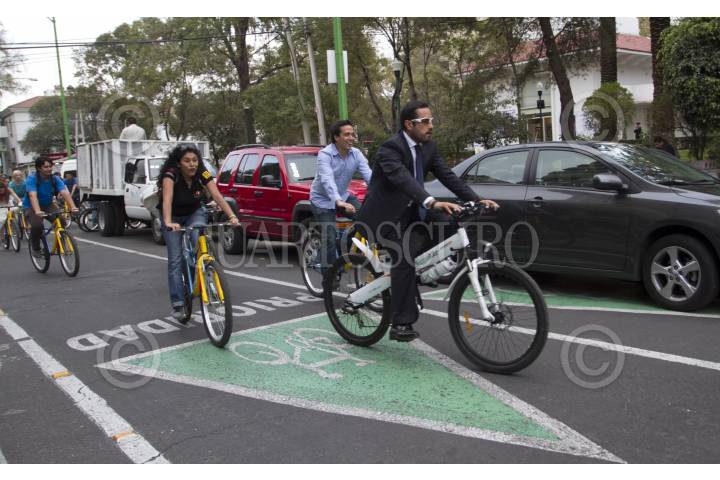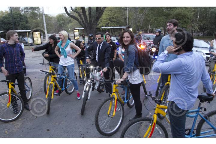 MÉXICO, D.F., 11DICIEMBRE2012.- Víctor Hugo Romo, jefe delegacional de Miguel Hidalgo, acompañado de Alejandro Encinas Najera, hijo de Alejando Encinas, senador del PRD, encabezo la bienvenida a las juventudes Internacionales de la Izquierda en parque Lincon y que posteriormente realizaron un recorrido en bicicleta que concluyo en la Rotonda de los Hombre Ilustres en el Panteón Dolores. FOTO: GUILLERMO PEREA /CUARTOSCURO.COM