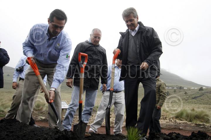 PUEBLA, PUEBLA, 04SEPTIEMBRE2009.- La Secretaría del Medio Ambiente y Recursos Naturales del Estado, colocó de manera simbólica el árbol número 300 mil, en la reserva natural del parque Izta-Popo, que abarca 48 mil héctareas de área protegida para la preservación del medio ambiente en el estado. FOTO: FRANCISCO GUASCO/CUARTOSCURO.COM