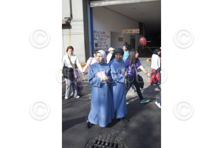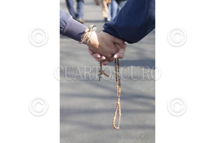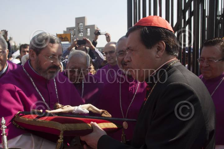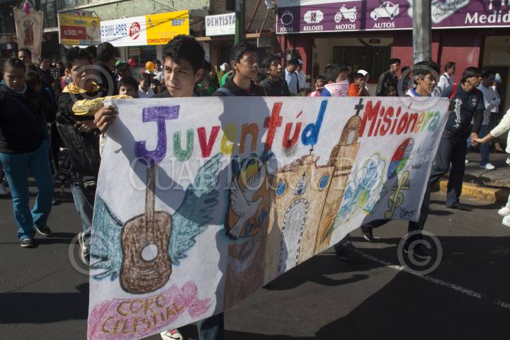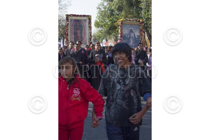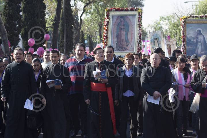 MÉXICO, D.F., 12ENERO2013.- El cardenal Norberto Rivera participó en la peregrinación anual de la Arquidiócesis de México que partió de la ex-glorieta de Peralvillo a a Basílica de Guadalupe. En punto de las 09:00 la procesión partió con la participación de 300 jóvenes quienes formaron la valla para que pasará el contingente encabezado por el Cardenal Rivera junto con ocho obispos auxiliares. FOTO: MOISÉS PABLO /CUARTOSCURO.COM