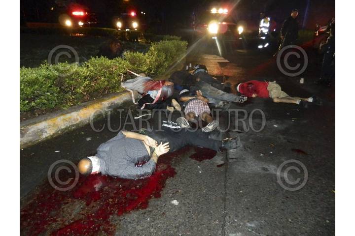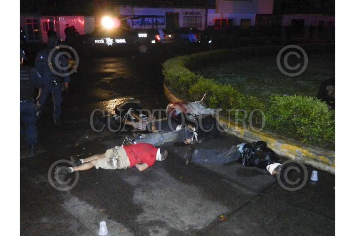 URUAPAN, MICHOACÁN, 19SEPTIEMBRE2014.-La madrugada de este viernes fueron localizados amordazados, maniatados y sin vida, seis hombres en el cruce de las calles Manuel Pérez Coronado y Berlín en la colonia Melchor Ocampo. Una persona logro sobrevivir a pesar de haber presentado varios impactos de bala, ahora se encuentra con atención medica y vigilancia por parte de la Policía Federal. Junto a los cuerpos fue dejado un mensaje firmado por un grupo criminal. FOTO: CUARTOSCURO.COM