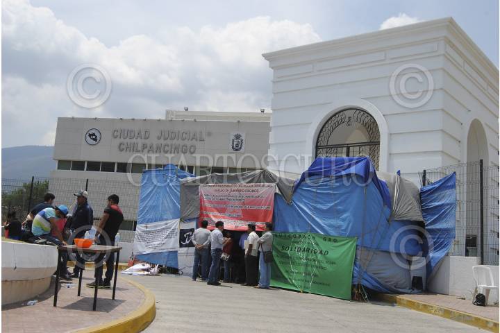 CHILPANCINGO, GUERRERO, 08ABRIL2015.- Trabajadores de la Ciudad Judicial de Guerrero se jalonearon en un intento de recuperar sus instalaciones con granaderos que resguardan el lugar. Xóchitl Jiménez Pita, Secretaria de Trabajo y Conflicto del Sindicato de Servidores Públicos del Poder Judicial del Estado, acusan al gobernador sustituto Rogelio Ortega Martínez y al magistrada presidente del Tribunal Superior de Justicia del Estado, Lambertina Galena Marín, de la represión que sufrieron esta mañana FOTO: JOSÉ I. HERNÁNDEZ / CUARTOSCURO.COM
