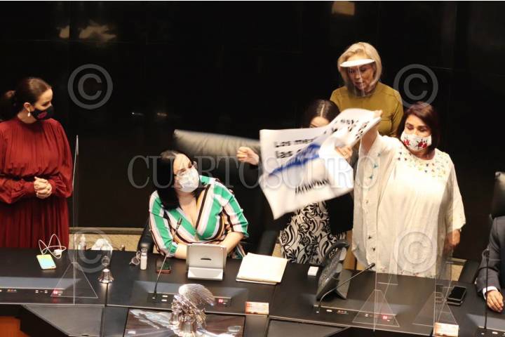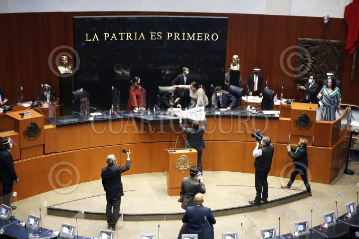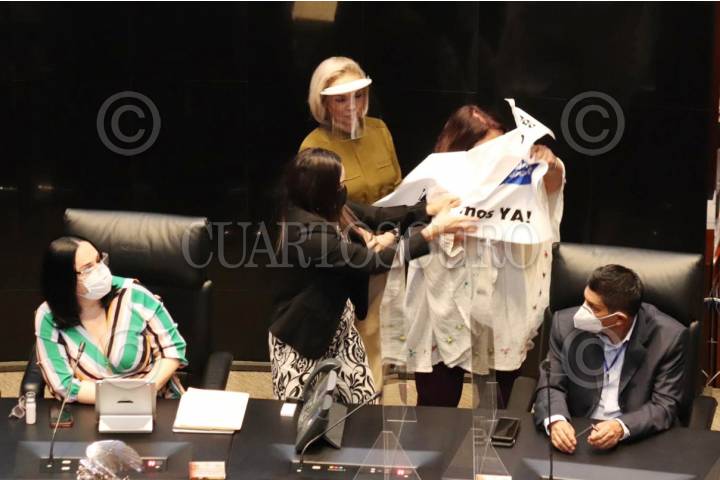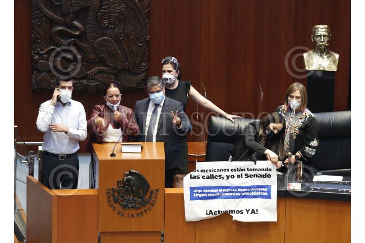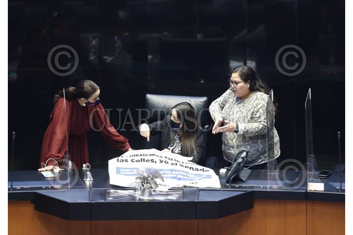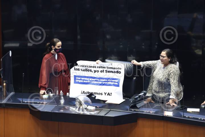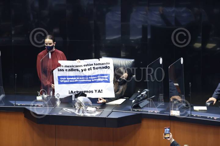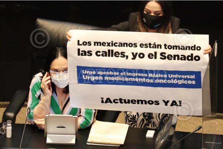 La senadora panista Martha Márquez subió a la tribuna con una pancarta para exigirle al gobierno un ingreso básico universal. La senador morenista Antares Vázquez intentó arrebatarle el cartel lo que provocó que se suspendiera por un momento la sesión en el Senado.