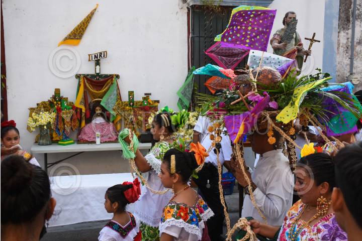 En el marco de la celebración de la Santa Cruz, y como cada año vecinos del tradicional barrio de San Román en Campeche, llevaron a cabo la tradicional procesión con bailes de jarana y vaquería.