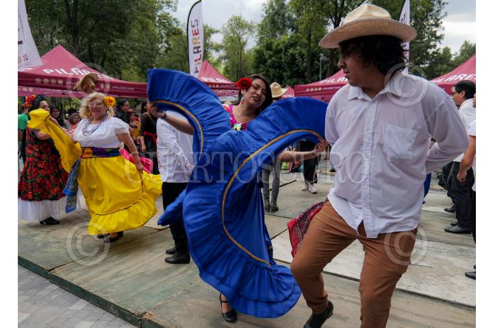 CIUDAD DE MÉXICO, 12JULIO2024.- PILARES organizó este viernes el “Gran Fandango”, un encuentro musical en el cual se bailó huapango, son hutesco, zapateado, y se llevaron a cabo varias masterclass para aprender a tocar la jarana y bordar paliacates, en el kiosko de la Alameda Central. FOTO: ALICE MORITZ/CUARTOSCURO.COM