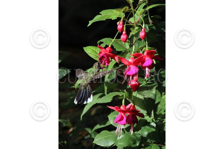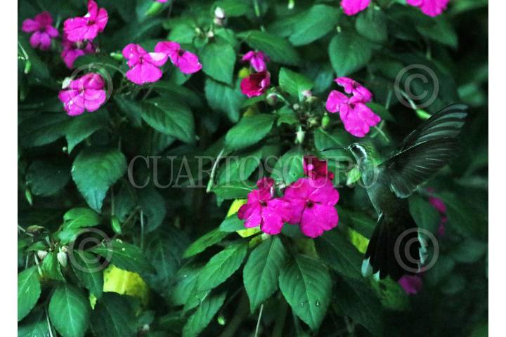 Colibríes y abejas saborean la miel de las flores de un jardín en Tetela del Volcán.