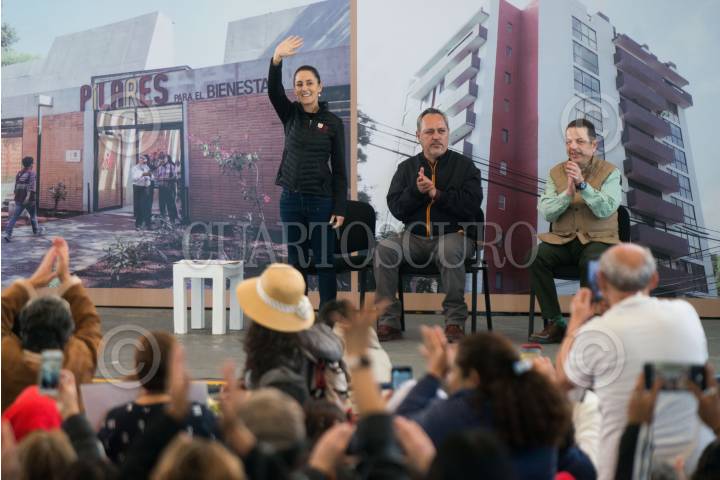 Claudia Sheinbaum, jefa de Gobierno, realizó en el Jardín Santiago Xicoténcatl su gira de trabajo con vecinos de la colonia Álamos de la alcaldía Benito Juárez, en la que informó sus principales acciones realizadas durante su gobierno.