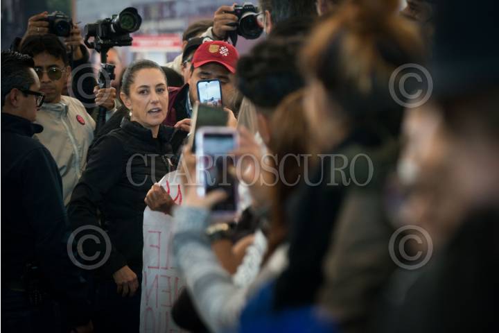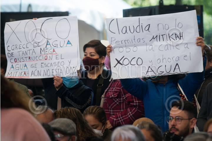 Vecinos de la colonia Xoco, solicitaron ayuda por escasez de agua a Claudia Sheinbaum, jefa de Gobierno, mientras realizaba en el Jardín Santiago Xicoténcatl su gira de trabajo con vecinos de la colonia Álamos.