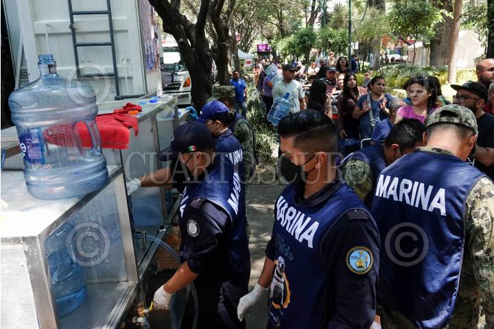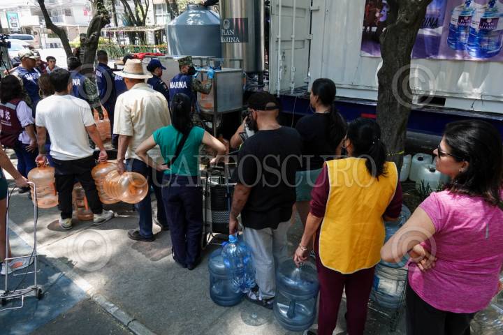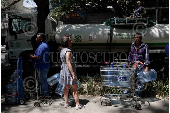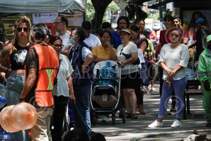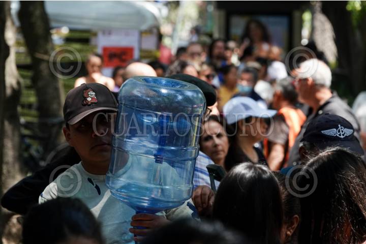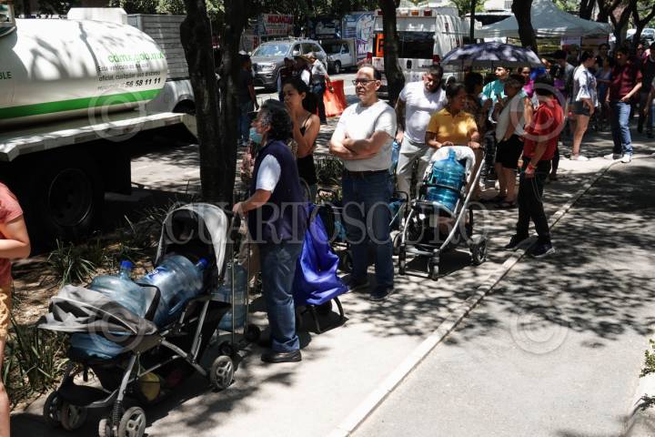 CIUDAD DE MÉXICO, 16ABRIL2024.- Portando sus garrafones, vecinos de la colonia Nápoles y aledañas, en la alcaldía Benito Juárez, acudieron al Parque Alfonso Esparza Oteo para abastecerse de agua mientras el problema por la contaminación por presunto diesel de uno de los pozos que abastecen a las viviendas. FOTO: GALO CAÑAS/CUARTOSCURO.COM