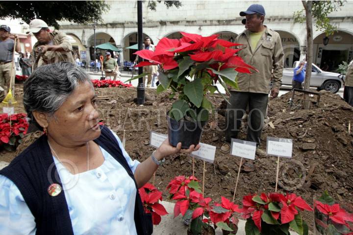 OAXACA, OAXACA 02DICIEMBRE2006.- Ciudadanos oaxaqueños donaron macetas con flor de noche buena las cuales entregaron a jardineros para plantarlas en las jardineras del zócalo de la ciudad. FOTO: CARLOS SALINAS /CUARTOSCURO.COM