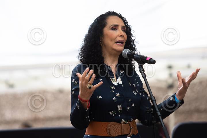 El elenco Jarocho El Espectáculo anunció su presentación en el Auditorio Nacional por sus 20 Aniversario. En la imagen Mayra Rojas, presentadora del evento.