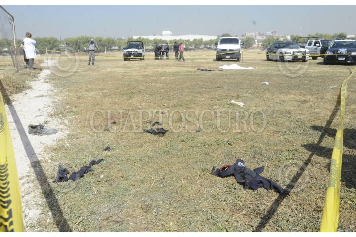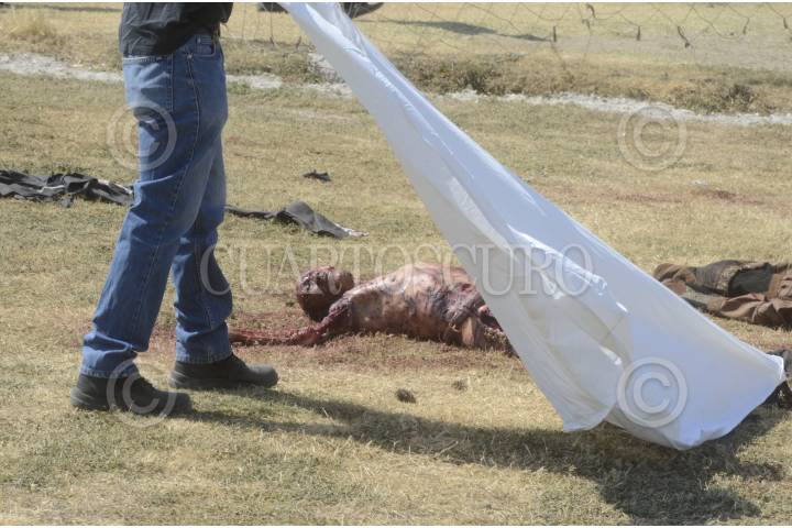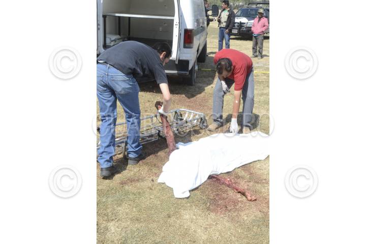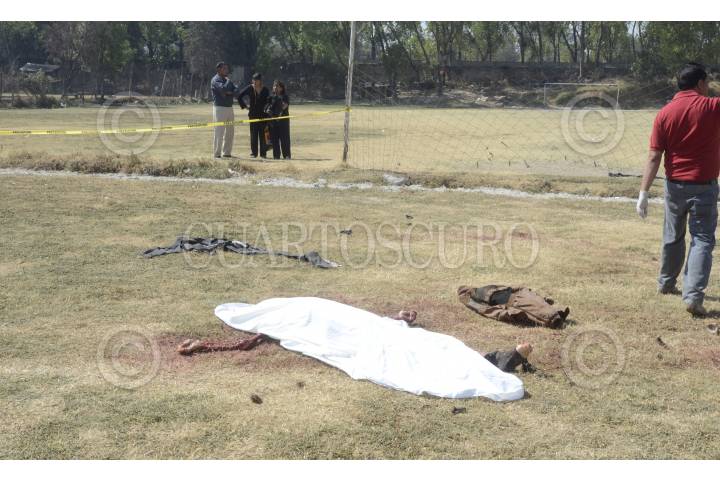 TLALNEPANTLA, ESTADO DE MÉXICO, 05MARZO2013.- Un señor fue hallado muerto al parecer mordido por varios perros en el campo de fútbol número D del deportivo "El hoyo", sus ropas estaban desgarradas, al llegar la policía le quitaron por lo menos más de 10 perros que estaban encima del sujeto, versiones de vecinos indican que la víctima estaba trabajando dándole mantenimiento al campo y bebiendo alcohol. FOTO: LUIS CARBAYO /CUARTOSCURO.COM