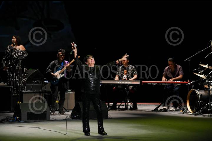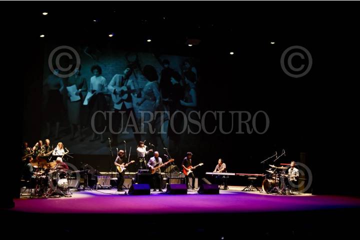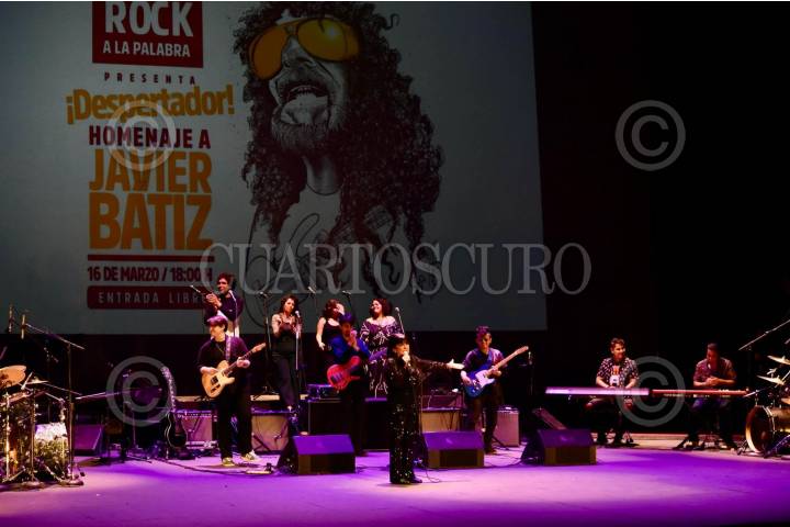 CIUDAD DE MÉXICO, 16MARZO2025.- Con la euforia del rock & roll, alumnos, alumnas, maestras y maestros de la Escuela de Música del Rock a la Palabra, institución de educación musical a cargo de la Secretaría de Cultura de la Ciudad de México, ofrecieron un concierto homenaje de entrada libre a una de las leyendas que marcaron el rock mexicano, Javier Bátiz, fallecido en diciembre de 2024 y cuyo legado fue evocado este domingo ante un lleno total del Teatro de la Ciudad Esperanza Iris. Su viuda Claudia Madrid y su hermana Baby Bátiz agradecieron a la Secretaría de Cultura capitalina y a todos los participantes la realización de este homenaje, el cual también contó con el trabajo gráfico de los caricaturistas y diseñadores Rapé, Rafael Barajas “El Fisgón”, Jorge Flores Manjarrez y Germán Montalvo. FOTO: SECRETARÍA DE CULTURA CDMX/CUARTOSCURO.COM