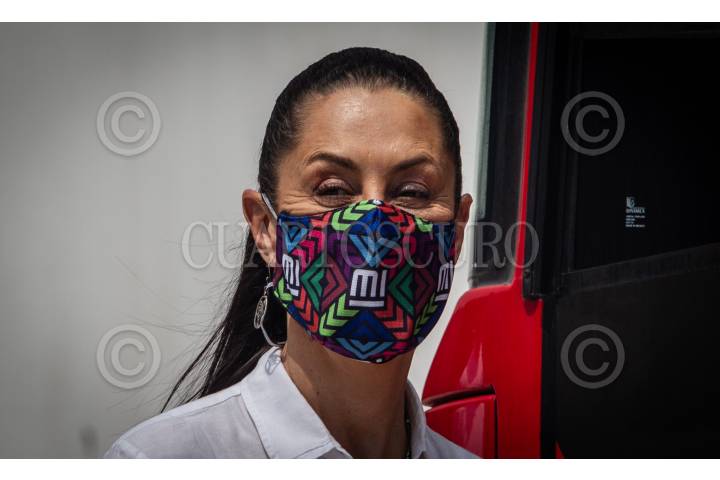 Claudia Sheinbaum Pardo, jefa de Gobierno de la Ciudad, durante la ceremonia con motivo del 15 aniversario del Metrobus