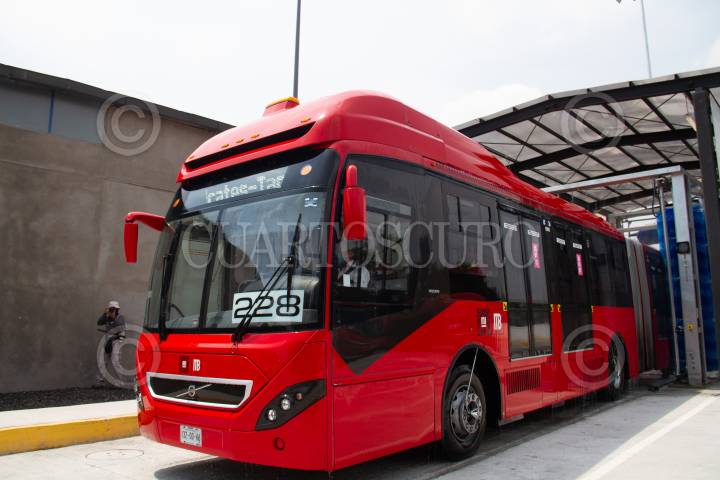 Limpieza de autobus de metrobus luego de pasar por la limpieza y sanitización por dentro