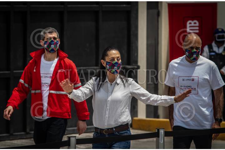 Claudia Sheinbaum Pardo, jefa de Gobierno de la Ciudad, acompañada de Guillermo Calderon, titular de transportes Eléctricos, en la Ciudad, encabezaron la ceremonia con motivo del 15 aniversario del Metrobus