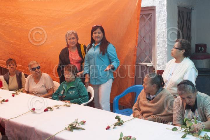 MÉXICO, D.F., 07MAYO2015.- La diputada local Lucia Estela Hernández convivió con madres de la tercera edad de la colonia Morelos, en la iglesia de la Divina Institución, ahí la legisladora las impulsó a que cuiden de sus personas, partieron un pastel y compartieron unas tostadas. Las jefas de familia disfrutaron de un buen momento recordando momentos familiares. FOTO: MOISÉS PABLO /CUARTOSCURO.COM