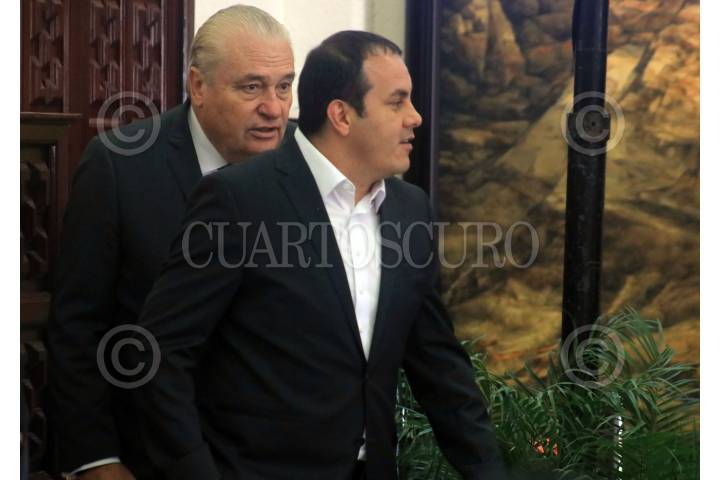 CUERNAVACA, MORELOS, 13MAYO2019.- El gobernador Cuauhtémoc Blanco Bravo atestiguo la firma de convenios de colaboración en materia de seguridad publica entre la Comisión Estatal de Seguridad Publica, la Fiscalía General de Justicia y la Secretaria de Movilidad. En la imagen platica con José Manuel Sanz Rivera jefe de la Oficina de la Gobernatura a su llegada al evento oficial. FOTO: MARGARITO PÉREZ RETANA /CUARTOSCURO.COM