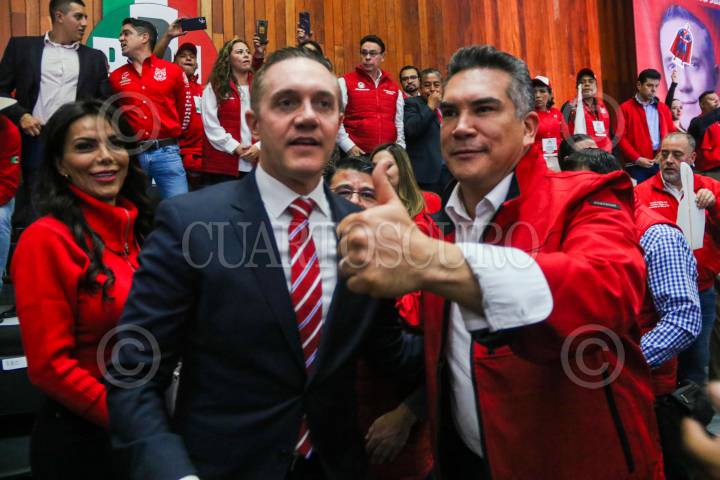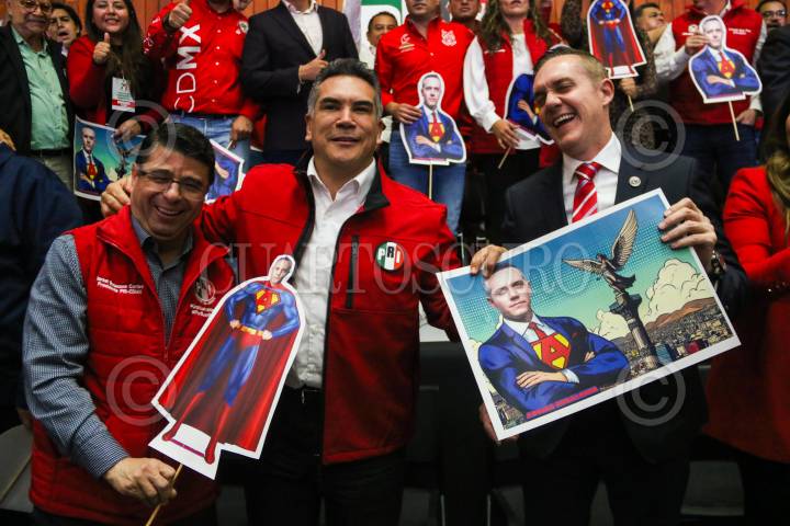 CIUDAD DE MÉXICO. 15NOVIEMBRE2023.- Adrián Ruvalcaba, se registró está tarde ante del CEN del PRI; en el salón Alfonso Reyes. Posteriormente se reunió con simpatizantes de diversas alcaldías en el auditorio Plutarco Elías Calles, dónde lo acompañó el líder Alejandro Moreno. FOTO: VICTORIA VALTIERRA/CUARTOSCURO.COM