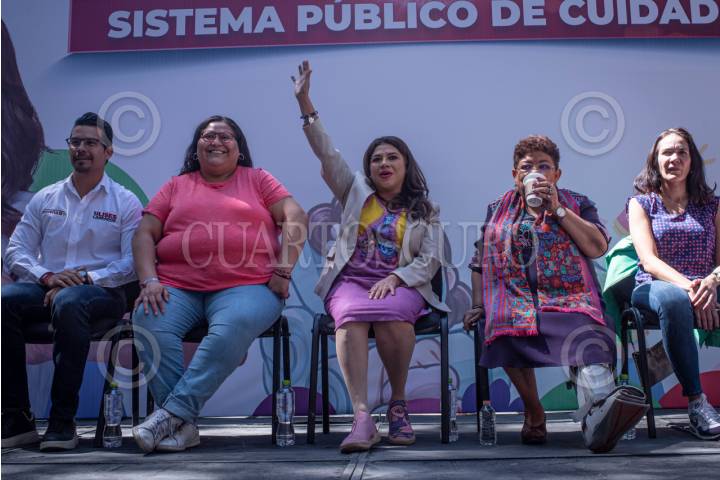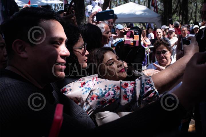 CIUDAD DE MÉXICO, 08MARZO2024.- Clara Brugada, candidata a la jefatura de Gobierno por parte de la Coalición Sigamos Haciendo Historia, encabezó la presentación del Sistema Público Ciudadano en la colonia Lomas de Sotelo, de la alcaldía Miguel Hidalgo. FOTO: PEDRO ANZA /CUARTOSCURO.COM