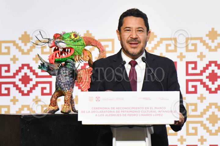 CIUDAD DE MÉXICO, 25SEPTIEMBRE2024.- Martí Batres, jefe de Gobierno, encabezó la ceremonia de reconocimiento en el marco de la declaratoria de patrimonio cultural intangible a los alebrijes de Pedro Linares. FOTO: MARIO JASSO/CUARTOSCURO.COM