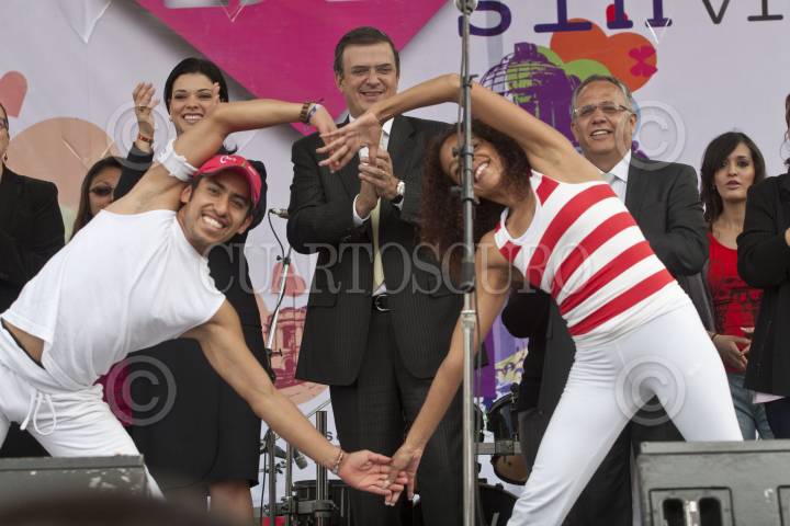 MÉXICO, D.F., 14FEBRERO2012.- Marcelo Ebrard Casaubón, jefe de Gobierno local, y su esposa Rosalinda Bueso, durante la feria del Amor y la Amistad que se realizó en el Monumento de la Revolución. FOTO: ISAAC ESQUIVEL/CUARTOSCURO.COM