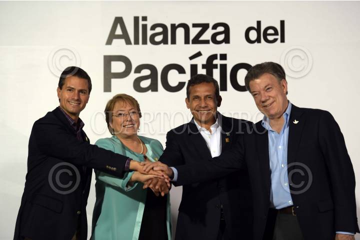 PARACAS, PERÚ, 03JULIO2015.- El Presidente Enrique Peña Nieto posó junto a sus homólogos de Colombia, Juan Manuel Santos; de Chile, Michelle Bachelet, y de la República del Perú, Ollanta Humala Tasso, para la fotografía oficial de la Décima Cumbre de la Alianza del Pacífico, que se lleva a cabo en esta ciudad. FOTO: PRESIDENCIA /CUARTOSCURO.COM