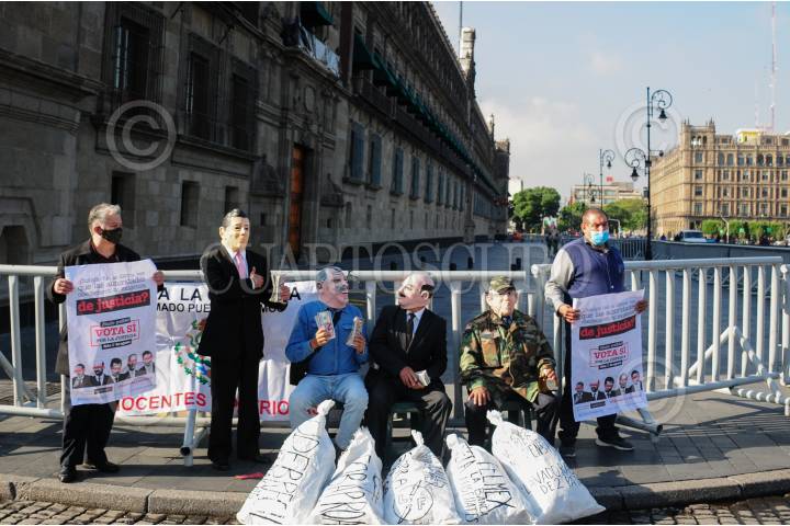 Individuos caracterizados como ex presidentes mexicanos se manifestaron afuera de Palacio Nacional.