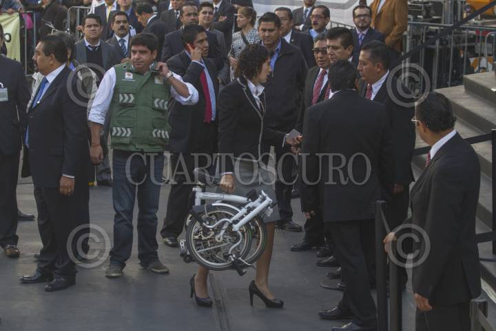 MÉXICO, D.F.,17SEPTIEMBRE2013.- Tania Müller, secretaría del Medio Ambiente del DF, llega en bicicleta a la Asamblea Legislativa del D.F. (ALDF), donde se llevó a cabo el primer informe de Gobierno de Miguel Ángel Mancera. FOTO: JUAN PABLO ZAMORA /CUARTOSCURO.COM