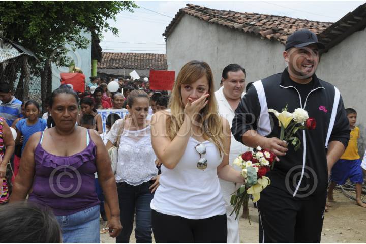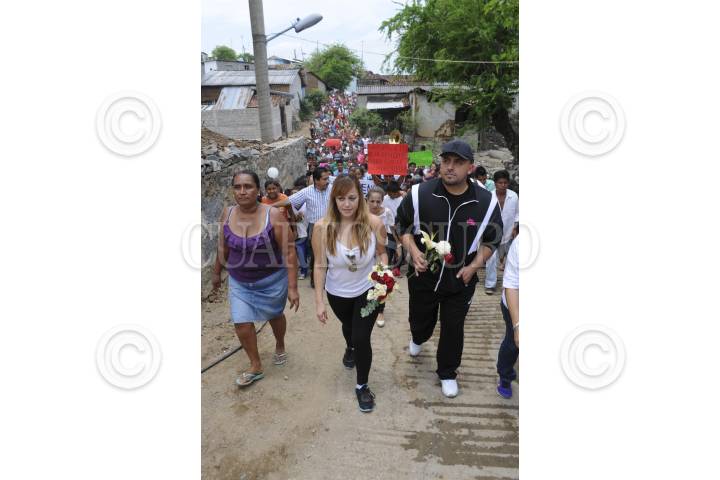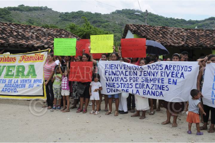 SABANILLAS, GUERRERO, 27MAYO2014.- Rosy Rivera, hija de Jennir Rivera cantante quien muriera en un accidente aéreo y Juan Rivera, hermano de la interprete, entregaron enseres y laminas galvanizadas en los poblados Dos Arroyos y Sabanillas comunidades que fueron afectadas por la tormenta Manuel, los hermanos de la "Diva de la Banda" se conmovieron hasta las lagrimas luego de observar la situación de crisis económicas que viven los pobladores. FOTO: BERNANDINO HERNÁNDEZ / CUARTOSCURO.COM