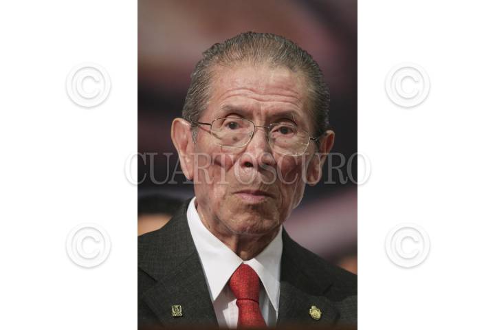 MÉXICO, D.F., 23OCTUBRE2012.- Jesús Kumate, médico cirujano egresado de la Escuela Médico Militar en 1946, y doctor en Ciencias por la Escuela Nacional de Ciencias Biológicas del Instituto Politécnico Nacional. Se ha especializado en investigación en infectología pediátrica y ha ejercido como catedrático en la Escuela Médico Militar, en la Facultad de Medicina de la Universidad Nacional Autónoma de México y en la Escuela Nacional de Ciencias Biológicas del Instituto Politécnico Nacional. Es autor de Manual de Infectología (1973-2001), La salud de los mexicanos y la medicina en México (1977), Salud para todos. ¿Utopía o realidad? (1989), La ciencia en la Revolución francesa (1991); Investigación clínica, Cenicienta y Ave Fénix (1987, 1995), El cólera (1993), Sistemas Nacionales de Salud en las Américas (1994) e Italia en la Medicina (1997), entre otros libros y artículos científicos. Durante la ceremonia institucional del Día del Médico en el auditorio del Centro Médico. FOTO: JUAN PABLO ZAMORA /CUARTOSCURO.COM