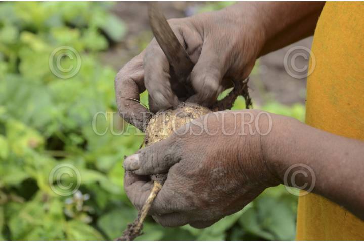 ATZACUALOYA, GUERRERO, 02OCTUBRE2014.- Productores de jícama de la comunidad indígena de Atzacualoya, municipio de Chilapa, han iniciado la cosecha luego de tres meses de trabajar bajo los inclementes rayos del sol. Esperan que con la venta de su producto durante las fiestas de día de muertos y decembrinas su trabajo sea redituable. La siembra de jícama se realiza en los últimos días de mayo, durante ese tiempo los campesinos riegan, cuidan, y abonan los zurcos para una obtener una buena cosecha. El costo de un costal de jícama es de aproximadamente $70, llegando a alcanzar precios de $150 cuando el tuberculo escasea. En la imagen, José es un campesino que junto con su familia se dedica a la siembra de maíz y jícama, entre otros productos que comercializa en la cabecera municipal de Chilapa. FOTO: BERNANDINO HERNÁNDEZ /CUARTOSCURO.COM