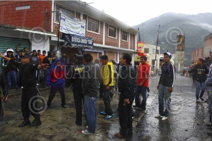 JILOTZINGO, ESTADO DE MÉXICO., 13MAYO2014.- Habitantes de San Luis Ayucan quemaron dos patrullas y mantuvieron retenidos a 10 policías municipales en la biblioteca pública de esta localidad, para exigir a las autoridades el rescate de una mujer, supuestamente secuestrada por guardias locales. Al Lugar arribo Damián Canales Mena, titular de Seguridad Ciudadana del Estado de México. FOTO: LUIS CARBALLO /CUARTOSCURO.COM