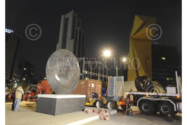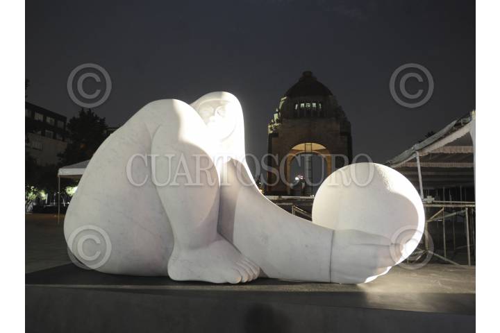 MÉXICO D.F., 25NOVIEMBRE2015.- Esculturas del artista, Jiménez Deredia, fueron colocadas esta madrugada en las inmediaciones de la Alameda Central, Paseo de la Reforma y Plaza de la República. Mismas que serán expuestas por 3 meses. FOTO: LUIS CARBAYO /CUARTOSCURO.COM