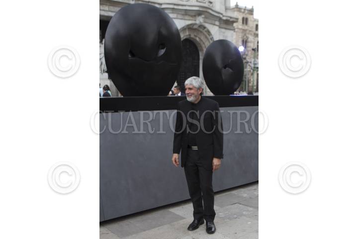 MÉXICO, D.F., 27NOVIEMBRE2015.- Jorge Enrique Jiménez Martínez, mejor conocido como Jiménez Deredia, durante la inauguración de la exposición “Una génesis para la paz” del artista costarricense en la explanada de Bellas Artes. FOTO: MOISÉS PABLO /CUARTOSCURO.COM