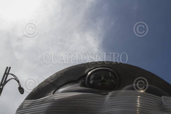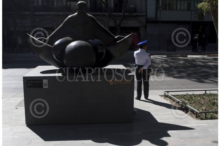 CIUDAD DE MÉXICO, 15FEBRERO2016.- Escultura de la exposición "Jiménez Deredia, una Génesis para la paz" colocada en el Cruce de Reforma y avenida Juárez. FOTO: MOISÉS PABLO /CUARTOSCURO.COM