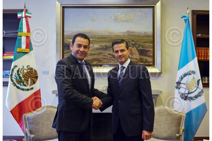 MÉXICO, D.F., 27OCTUBRE2015.- El presidente Enrique Peña Nieto se reunió con el presidente electo de Guatemala, Jimmy Morales, en la Residencia Oficial de Los Pinos, con quien dialogó en torno a los proyectos conjuntos que promoverán para fortalecer la productividad y competitividad de ambas economías. FOTO: PRESIDENCIA /CUARTOSCURO.COM