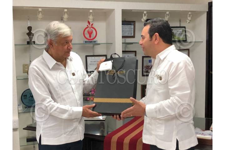 TUXTLA GUTIERREZ, CHIAPAS, 28AGOSTO2018.- Andrés Manuel López Obrador, presiente electo de México se reunió la mañana de hoy con el presidente de la República de Guatemala, Jimmy Morales Cabrera, en la capital del Chiapas. FOTO: CUARTOSCURO.COM