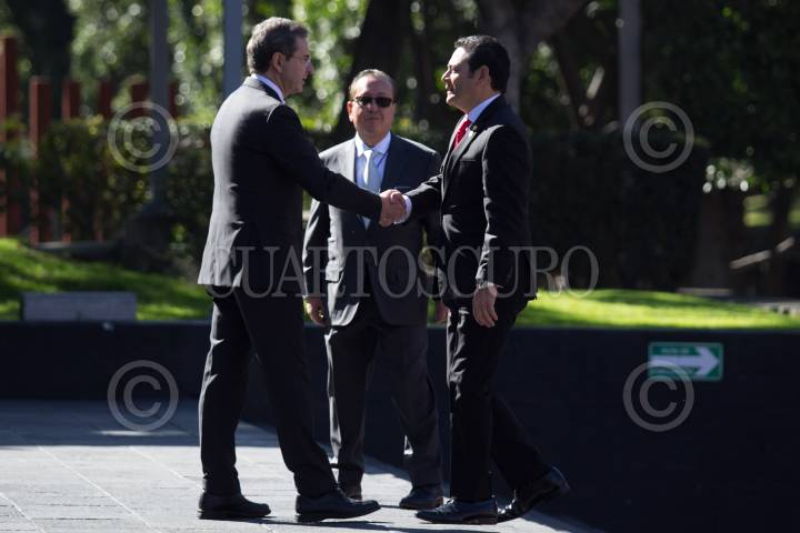 CIUDAD DE MÉXICO, 01DICIEMBRE2018.- Jimmy Morales, presidente de Guatemala, y Esteban Moctezuma, próximo secretario de Educación Pública, a su arribo a la Cámara de Diputados para la toma de protesta como presidente de México de Andrés Manuel López Obrador. FOTO: GALO CAÑAS /CUARTOSCURO.COM