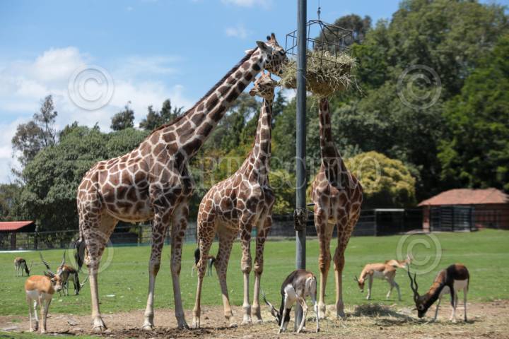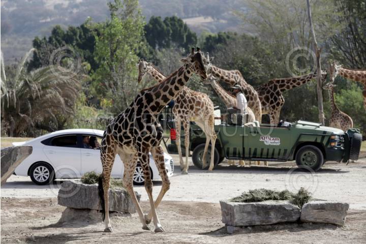 PUEBLA, PUEBLA, 27ENERO2023.- La jirafa "Benito" fue integrada con su nueva manada en Africam Safari, parque de conservación de vida silvestre, tras un periodo de observación en aislamiento. FOTO: MIREYA NOVO/CUARTOSCURO.COM