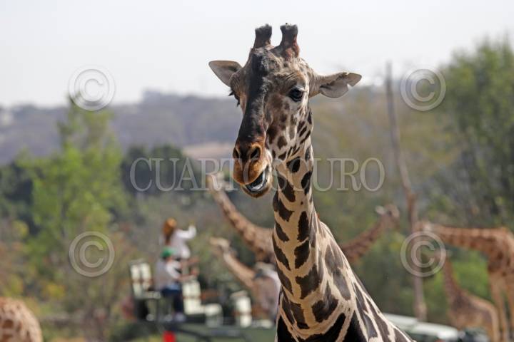 CALIMAYA, ESTADO DE MÉXICO, 03AGOSTO2025.- Cosmo es el nuevo habitante del Parque Ecológico Zacango, se trata de una jirafa macho de una año tres meses, procedente del Zoológico de Guadalajara, pesa cerca de 550 kilos y mide más de 3 metros, con su llegada se busca conservar esta especie. Ya convive con sus compañeras Daya, Nasha y Patricia en Zacango, durante esta temporada vacacional los visitantes podrán conocerlo. FOTO: CRISANTA ESPINOSA AGUILAR/CUARTOSCURO.COM