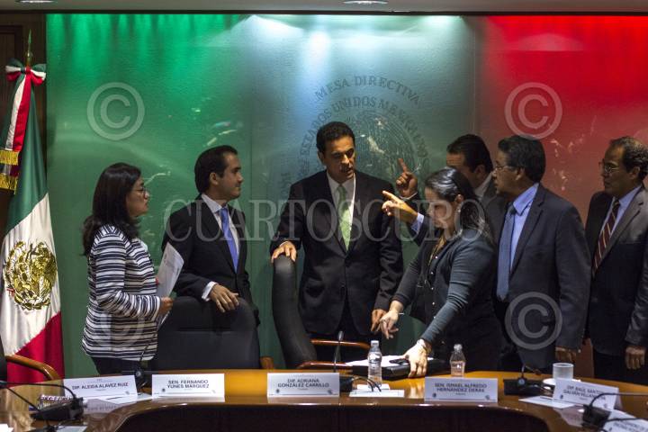 MÉXICO, D.F., 14JULIO2015.- La diputada Aleida Alavez junto a Fernando Yunes Márquez, Adriana González Carrillo, Ismael Alfredo Hernández Deras durante la reunión bicameral de seguridad que inicio sesión permanente para tratar el tema de la fuga de Joaquín “El Chapo” Guzmán. FOTO: ENRIQUE ORDÓÑEZ /CUARTOSCURO.COM
