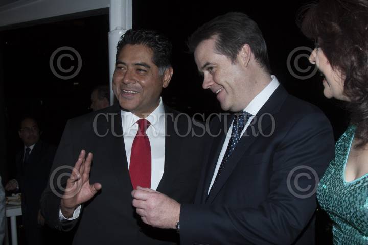 MÉXICO, D.F., 23ABRIL2013.- El Gobernador del Estado de Durango, Jorge Herrera y Juan Domingo Beckmann, director de José Cuervo, dialógan, momentos antes de dar a conocer las actividades a realizarse en el estado por el 450 aniversario de la fundación de la capital. FOTO: FRANCISCO RODRÍGUEZ /CUARTOSCURO.COM
