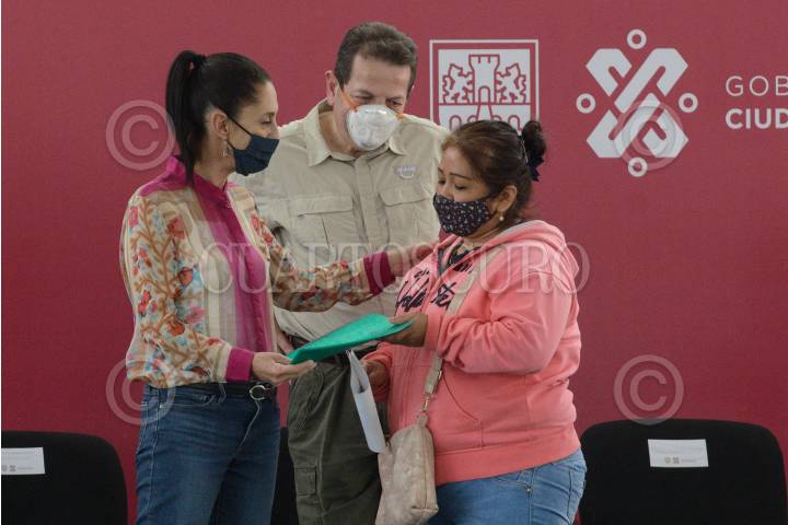 Claudia Sheinbaum, jefa de Gobierno, encabezó la Primera Entrega presencial de créditos 2021 en la alcaldía Tláhuac.