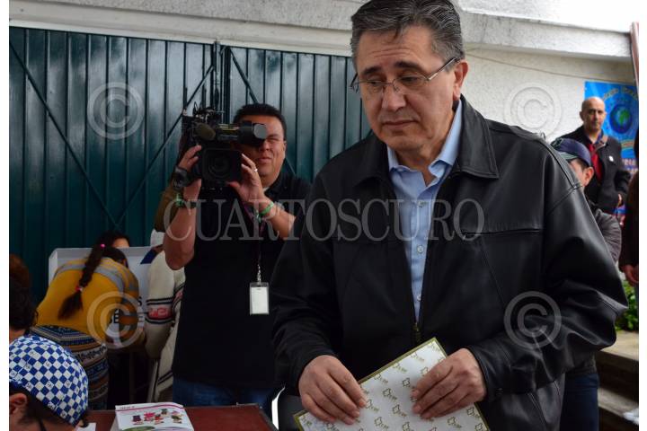 MÉXICO, D.F., 07JUNIO2015.- Luis Raúl González Pérez, titular de la Comisión Nacional de Derechos Humanos (CNDH), acompañado por su esposa, acudió a la casilla ubicada al interior de un colegio particular en la delegación Álvaro Obregón para emitir su voto. Su estancia fue breve, después de 10 minutos se retiró del lugar. FOTO: MARÍA JOSÉ MARTÍNEZ /CUARTOSCURO.COM