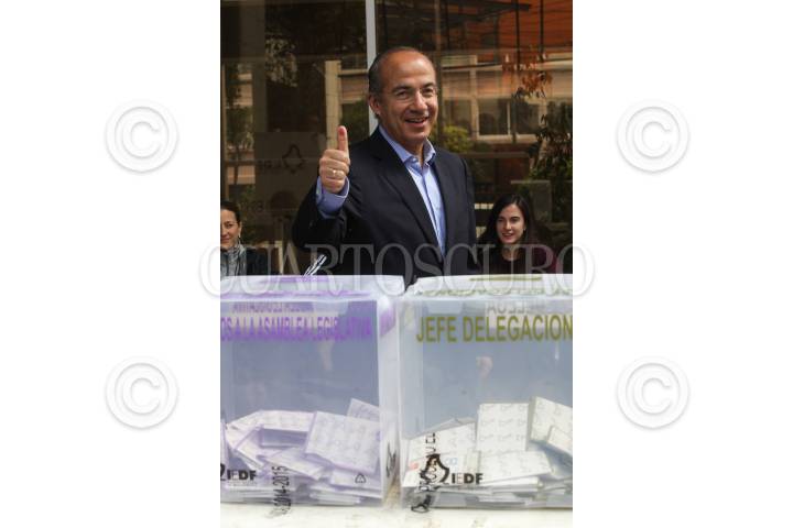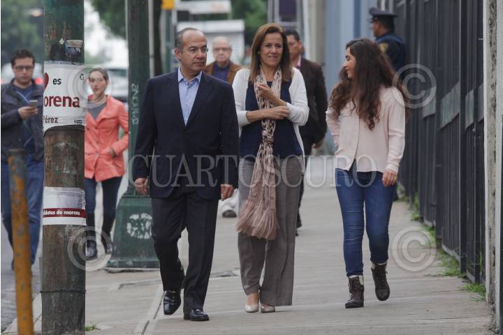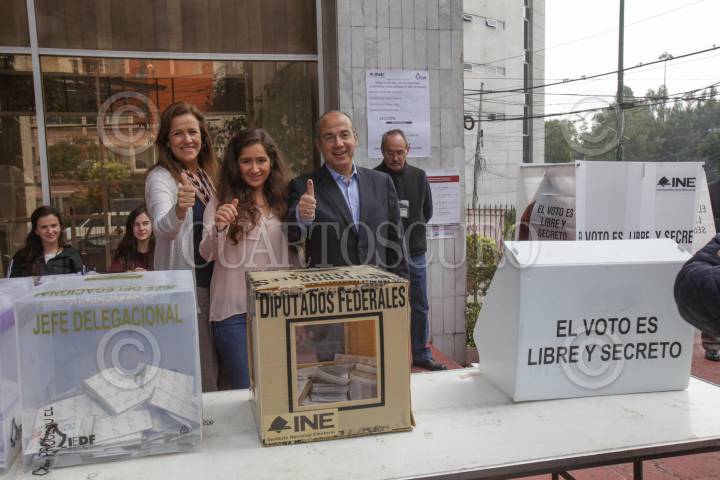 MÉXICO, D.F. 07JUNIO2015.- El expresidente de México, Felipe Calderón Hinojosa, acudió a votar esta mañana a una casilla ubicada en la colonia Las Aguilas, al Sur de la Ciudad. Acompañado de su esposa, Margarita Zavala y su hija María; Calderón destapó a su esposa para la presidencia nacional del PAN. FOTO: JUAN PABLO ZAMORA /CUARTOSCURO.COM